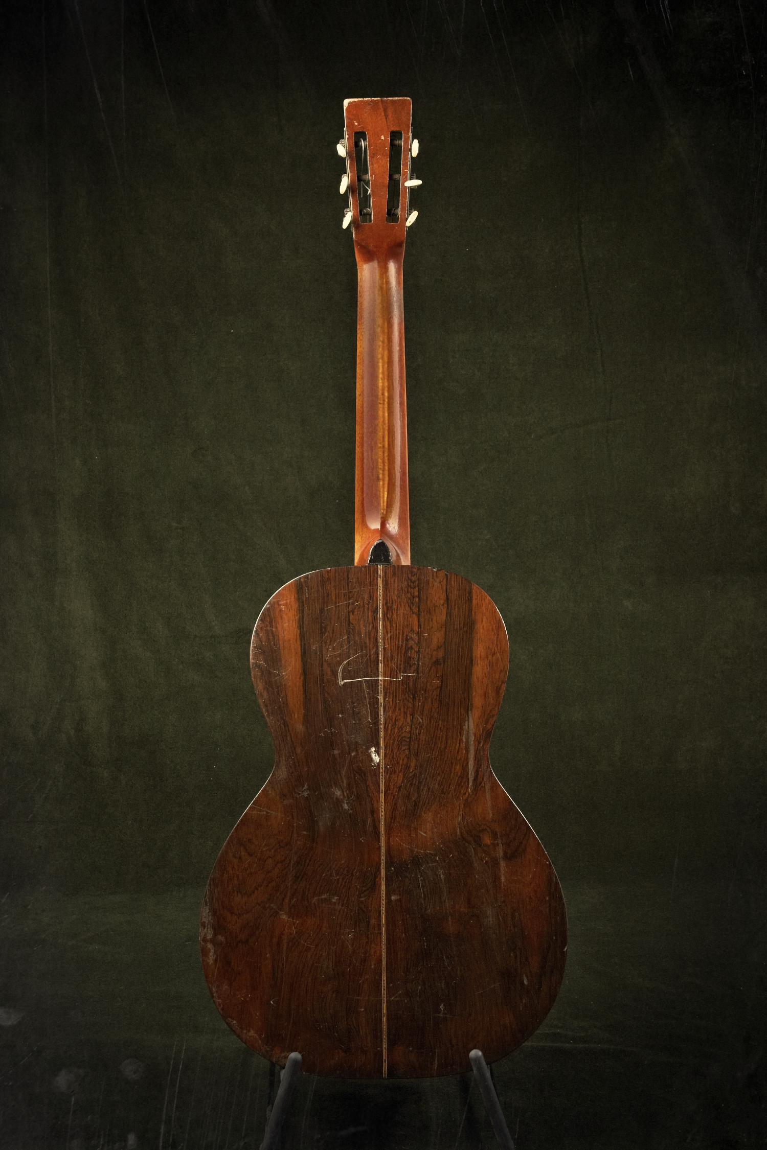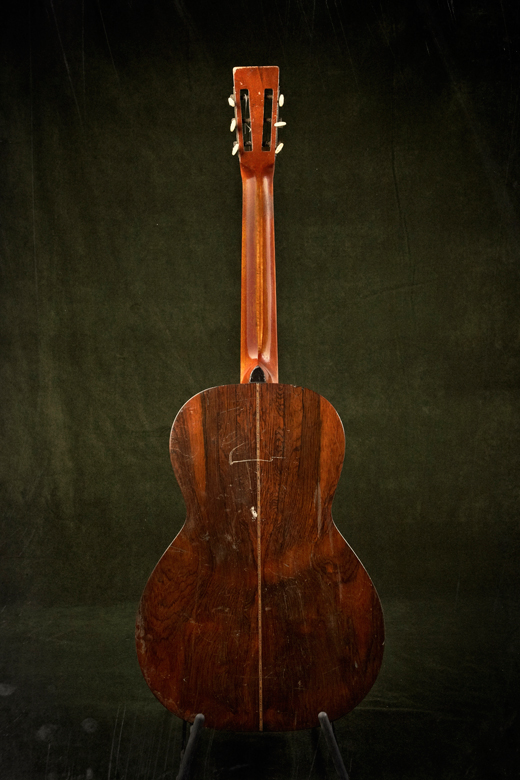 Under alle omstændigheder er den bygget i utrolig smukt brasiliansk rosentræ, og med abalone-bindings, hele vejen rundt - features, man kun brugte/bruger, når man mener serious business. Det har været et absolut top of the end instrument.