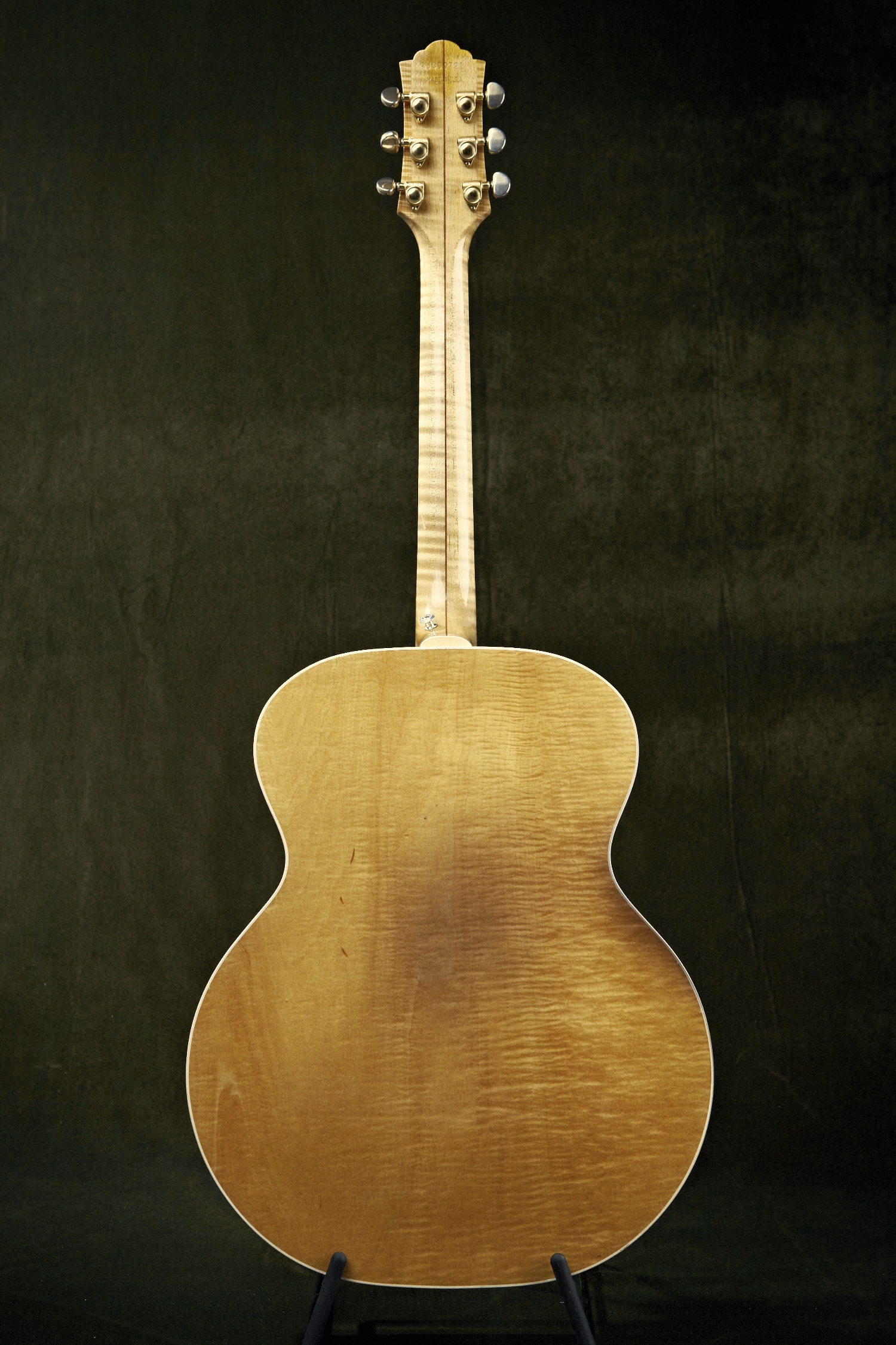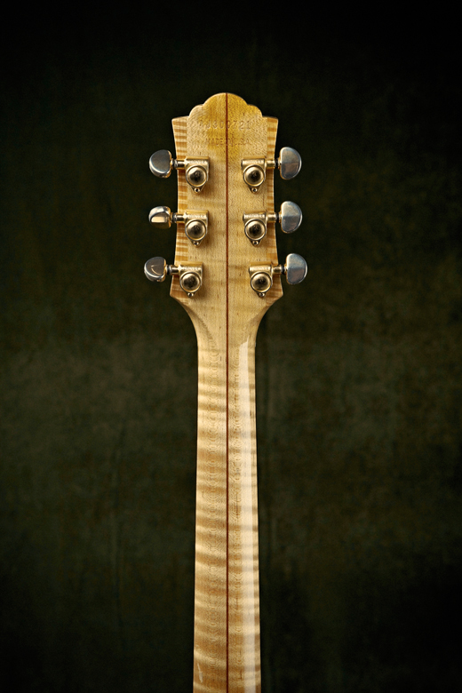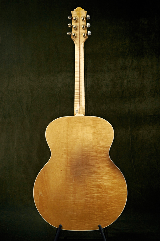 Denne Guild har jeg kun haft et års tid. Jeg faldt for den bl.a. på grund af den mørke patina, dér hvor dens tidligere ejermand, har haft sin arm, når han spillede på den. Og det samme på bagsiden. (Det går sikkert af, hvis man gir' det en gang sulfo!)